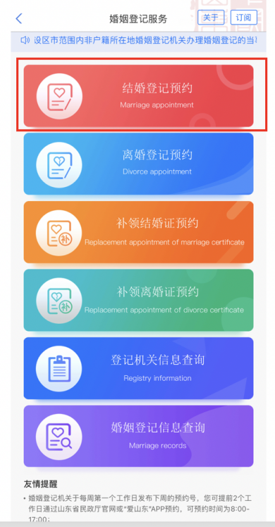 爱在山东,结婚登记就用“爱山东”。5月20日结婚登记预约现已陆续开放,预约时间为每个工作日8:00-17:00,婚姻登记机关单日预约数量有限,计划领证的准新人们,快来“爱山东”预约登记吧!