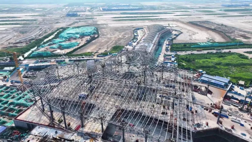 济南机场二期改扩建工程T2航站楼屋顶钢网架(资料图)