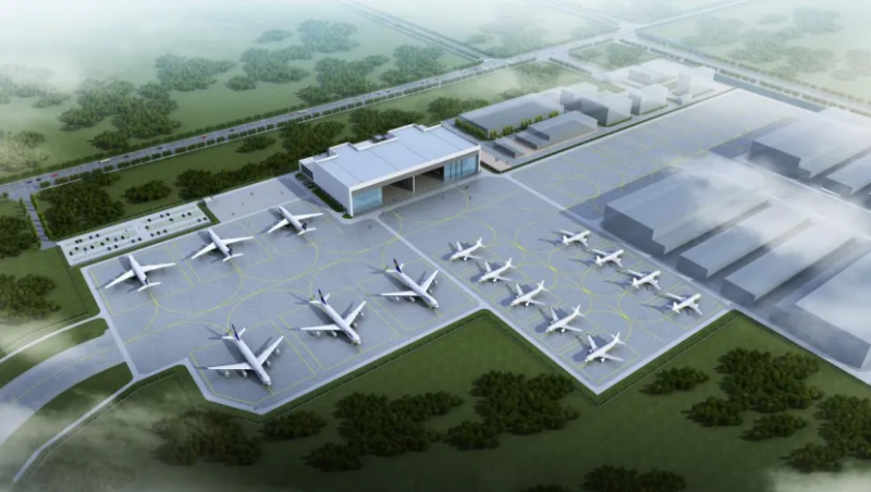 前期,停机坪及拖机道施工已完成并交付使用。此次开工建设的飞机喷漆维修机库总建筑面积3万多平方米,除了一个可容纳大型飞机(如宽体机)的大跨度钢结构机库本体,还包括部件拆装与维修车间、办公、监控与设备间等配套设施。预计今年8月份,项目能完成主体封顶,2027年7月全部竣工。