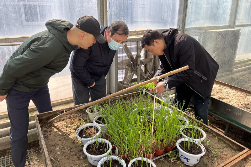 山东深蓝智谱数字科技有限公司创始人宋志华(左)正在查看实验作物情况。受访单位供图