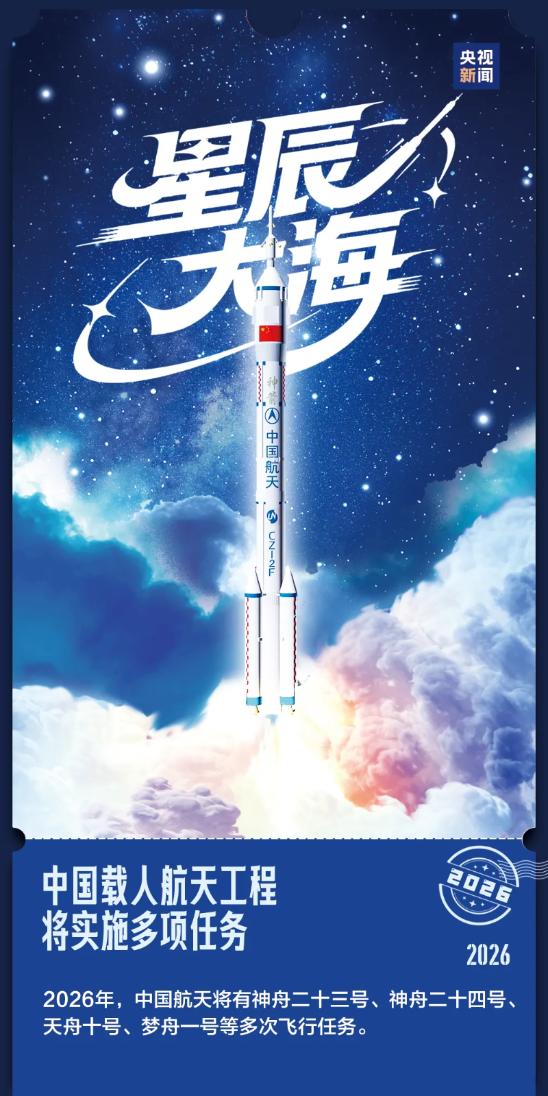 2026年,是中国共产党成立105周年,是“十五五”规划开局之年,是APEC“中国年”,中国航天也将向着星辰大海迈出新的足迹。与此同时,冬奥会、世界杯等一众赛事将在全球轮番上演,点燃激情、凝聚目光。