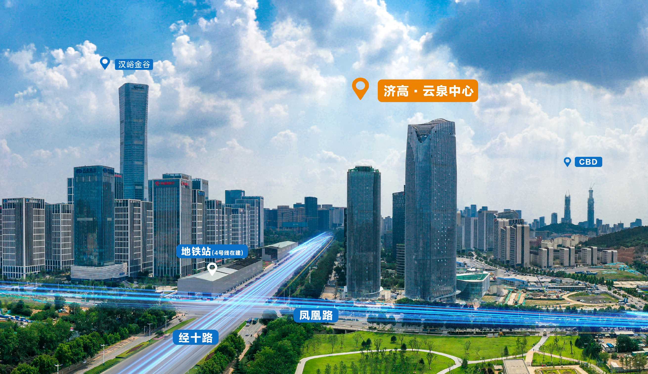 项目总建筑面积约42万平方米,总投资约39亿元。项目共分为两期开发,重点打造总部级企业聚集地,为汉峪金谷A区的升级更迭之作,以科创金融产业为重点、现代服务业为支撑的产业发展新高地、人才聚集新地标、科创金融新引擎,已引入玫德集团等龙头企业。