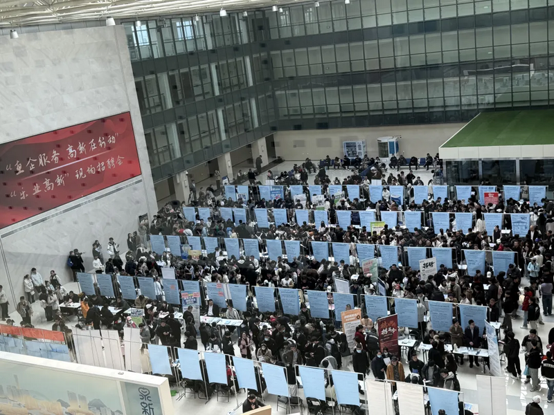 随着“东强战略”的深入实施,东部城区的产业能级逐年提升,片区长期缺少常态化、规范化的招聘活动。济南高新区集聚9万余家企业,40万人才,企业用工需求与人才流动需求旺盛。“能不能将济南高新区政务服务中心一楼敞亮的中厅场地在周末时段充分利用起来?”2023年底,一个直击需求的暖心构想催生出一个特色招聘品牌,也打通了人才供需精准对接的通道。