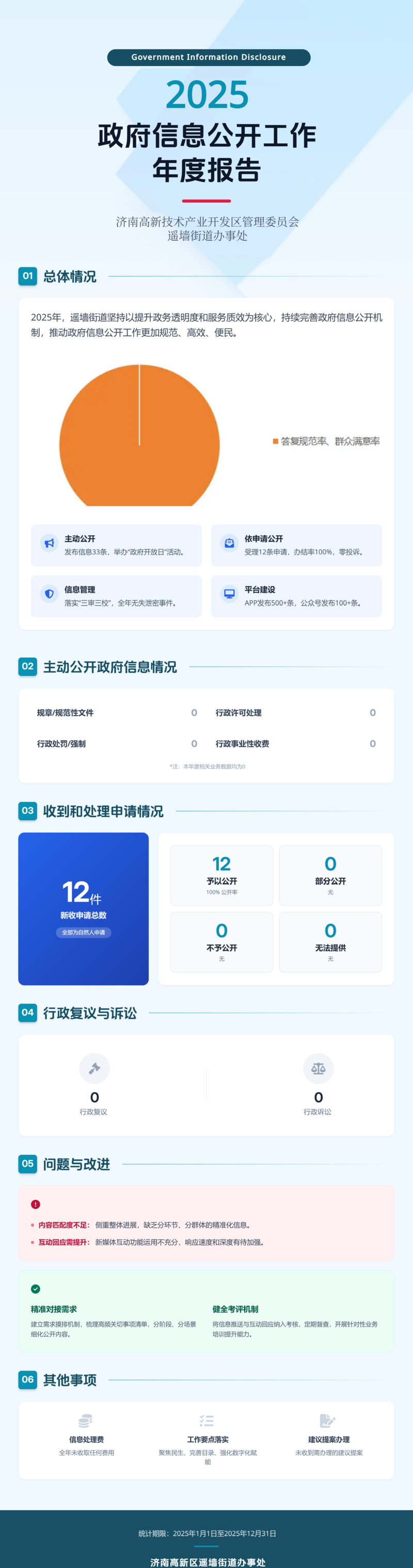 济南高新技术产业开发区管理委员会遥墙街道办事处 2025 年政府信息公开工作年度报告